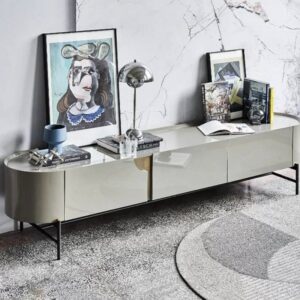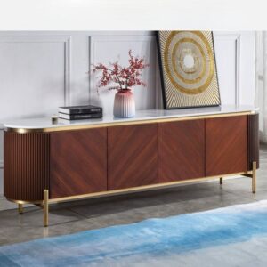 ตู้ทีวี ท็อปหิน ขาสแตนเลสสีทอง หน้าบาน veneer (F06C0070)