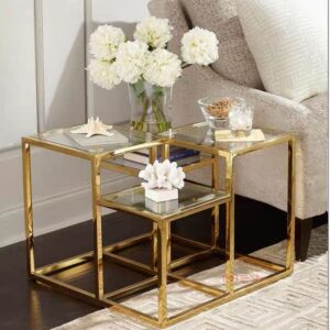 โต๊ะข้างโครงสแตนเลส ท็อปกระจกนิรภัย (F03C00143)