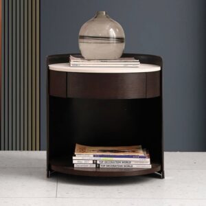 โต๊ะข้างโคมไฟขนนก ฐานหินอ่อน ลิ้นชักหุ้มหนัง (F03C00145)