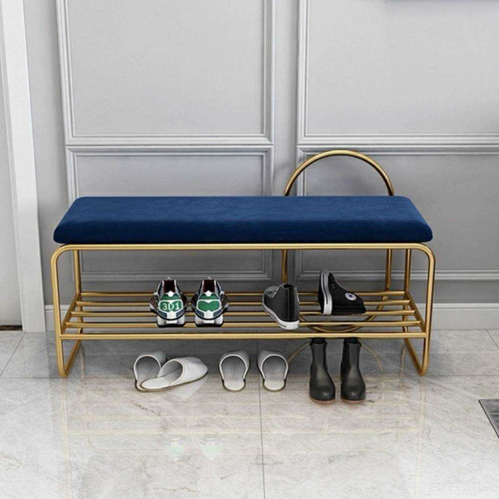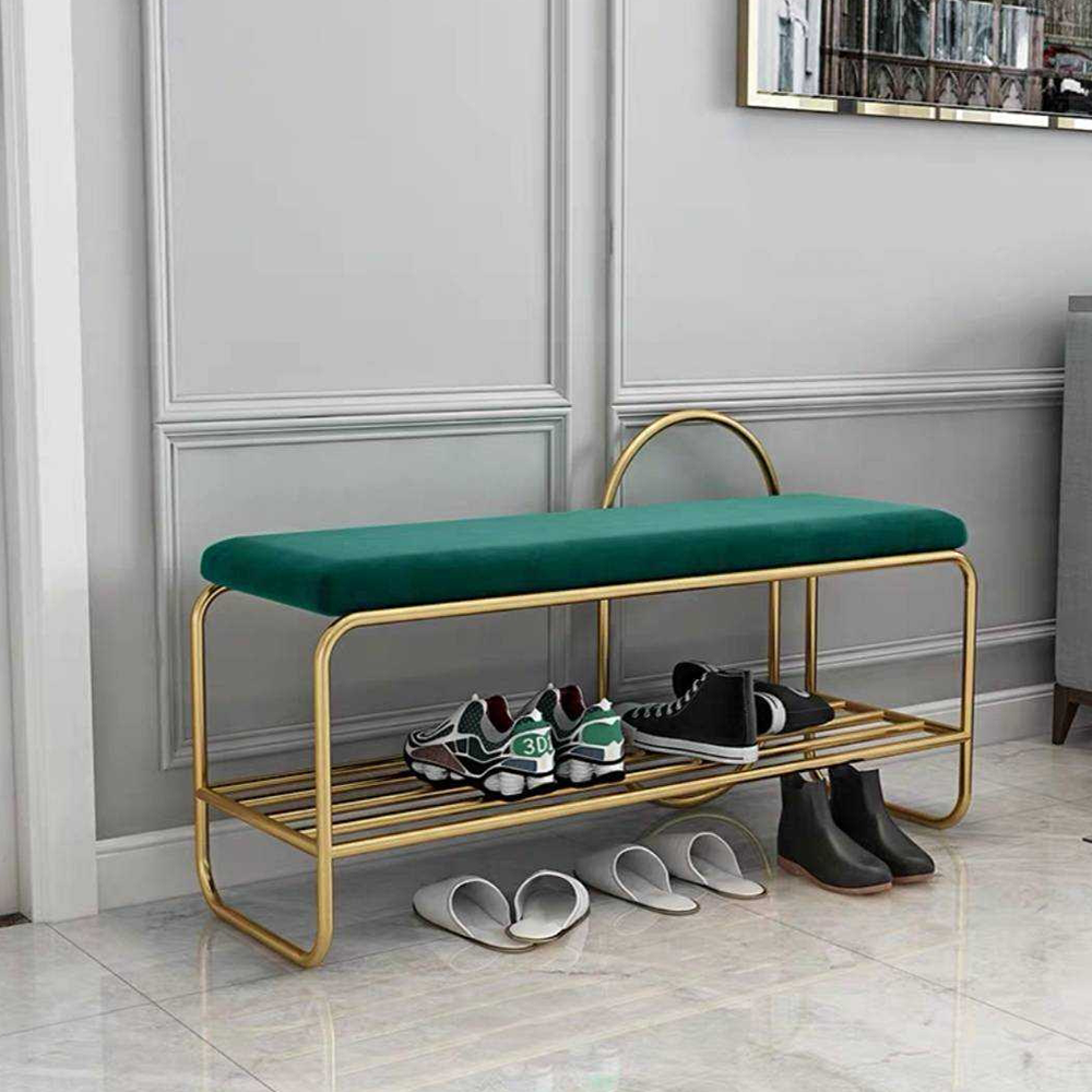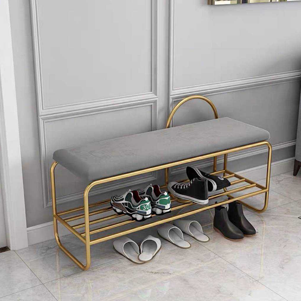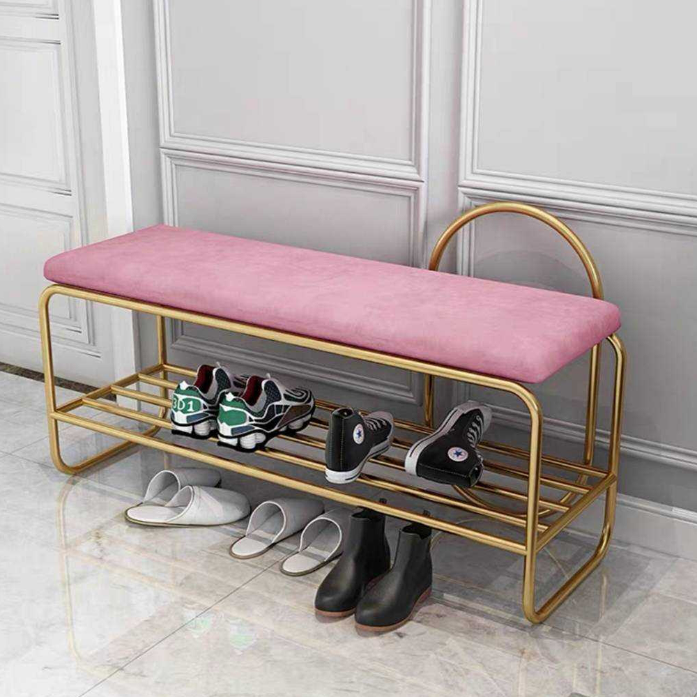- ม้านั่ง+ที่วางรองเท้า ขาเหล็กเบาะกำมะหยี่/หนัง ขนาด 80 * 35 * 45 เซนติเมตร