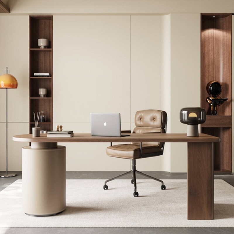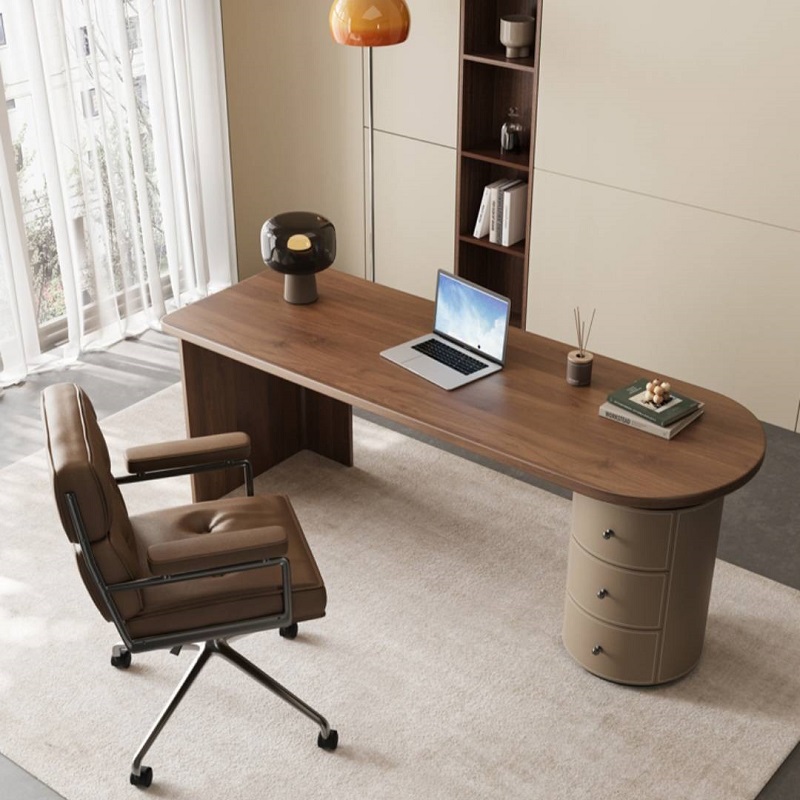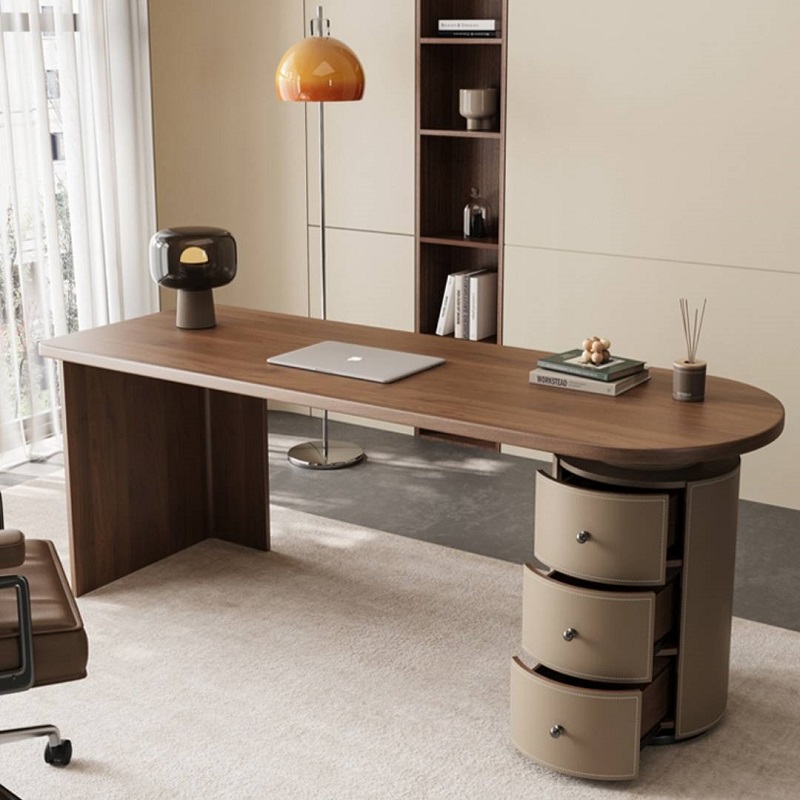 โต๊ะทำงาน ท็อปไม้ ตู้ลิ้นชักหุ้มหนัง #F10C00148 มี 3 ขนาด
