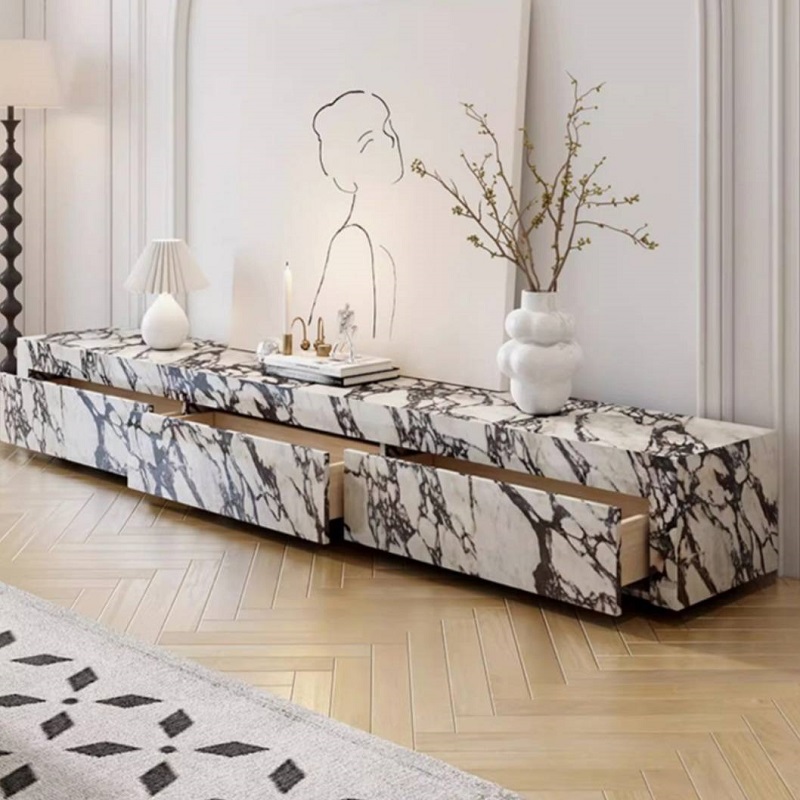 ตู้ทีวี โครงไม้ หุ้มหิน ดีไซน์หรูหรา (F06C0066)
