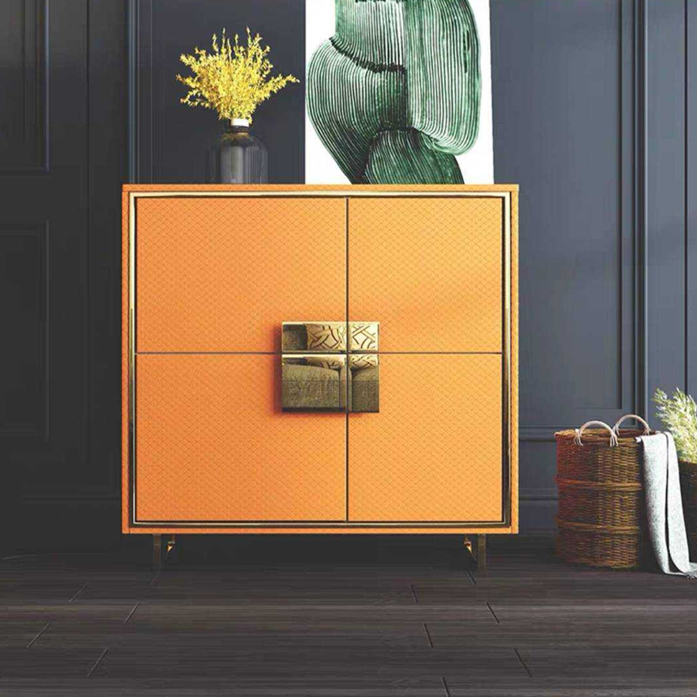 ตู้เก็บของ ขอบแสตนเลสไม้particle หุ้มหนังPUกันรอยขีดข่วน มี 2 ขนาด
