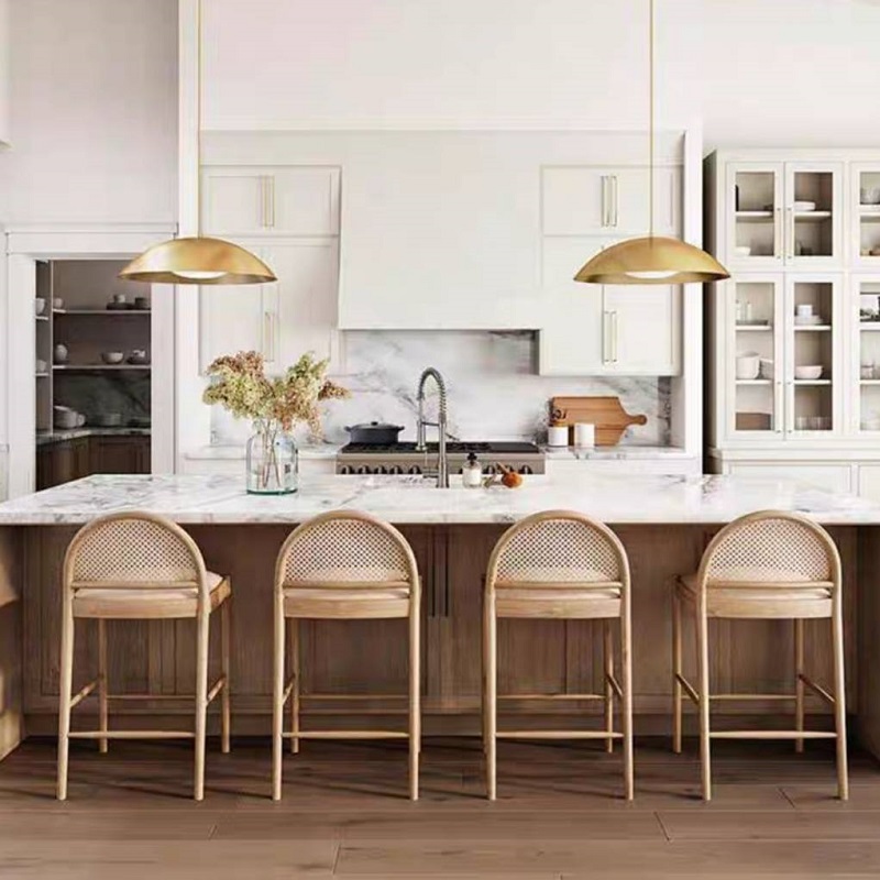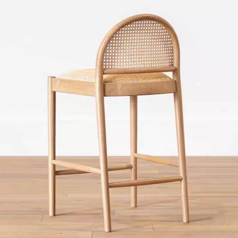 เก้าอี้บาร์ มินิมอล โครงไม้เนื้อแข็ง เบาะหวาย (F01C00270)