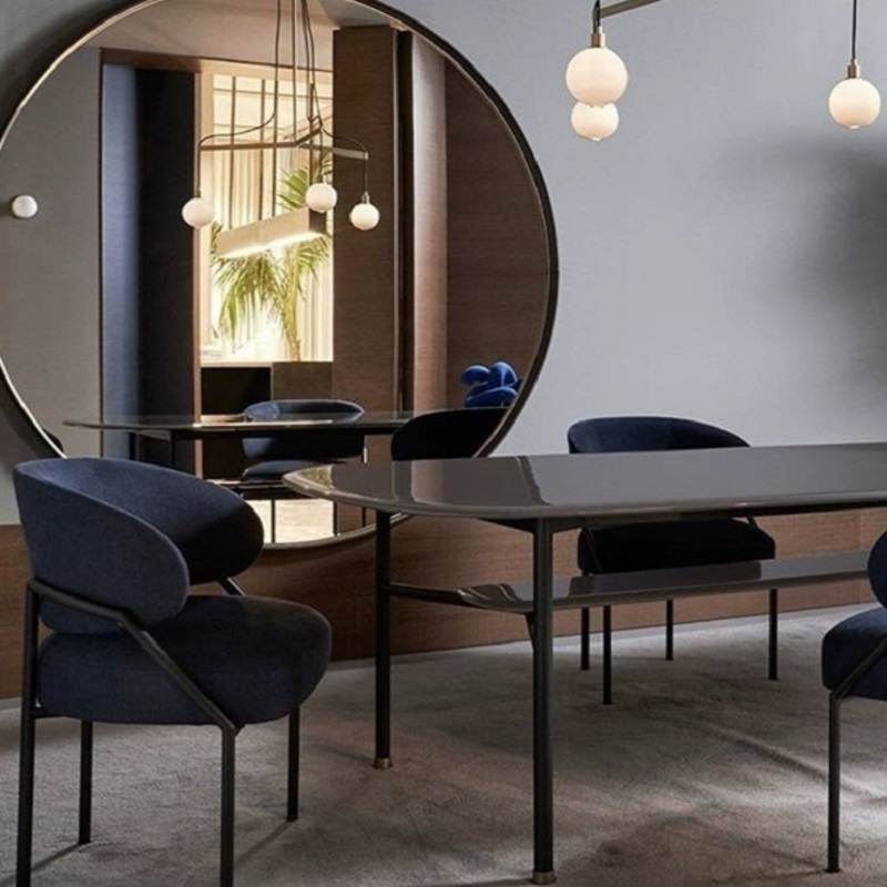 เก้าอี้โครงเหล็กสีดำ เบาะผ้า รูปแบบทันสมัย #F01C00206