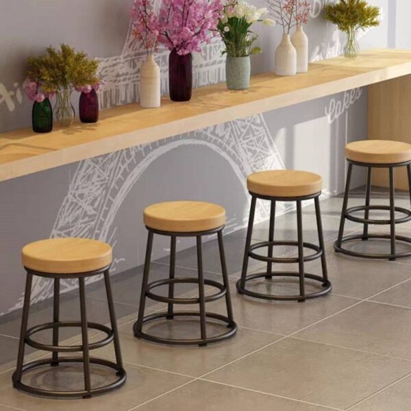 เก้าอี้ ที่นั่งไม้ ขาเหล็ก สไตล์วินเทจ (F01C00268)