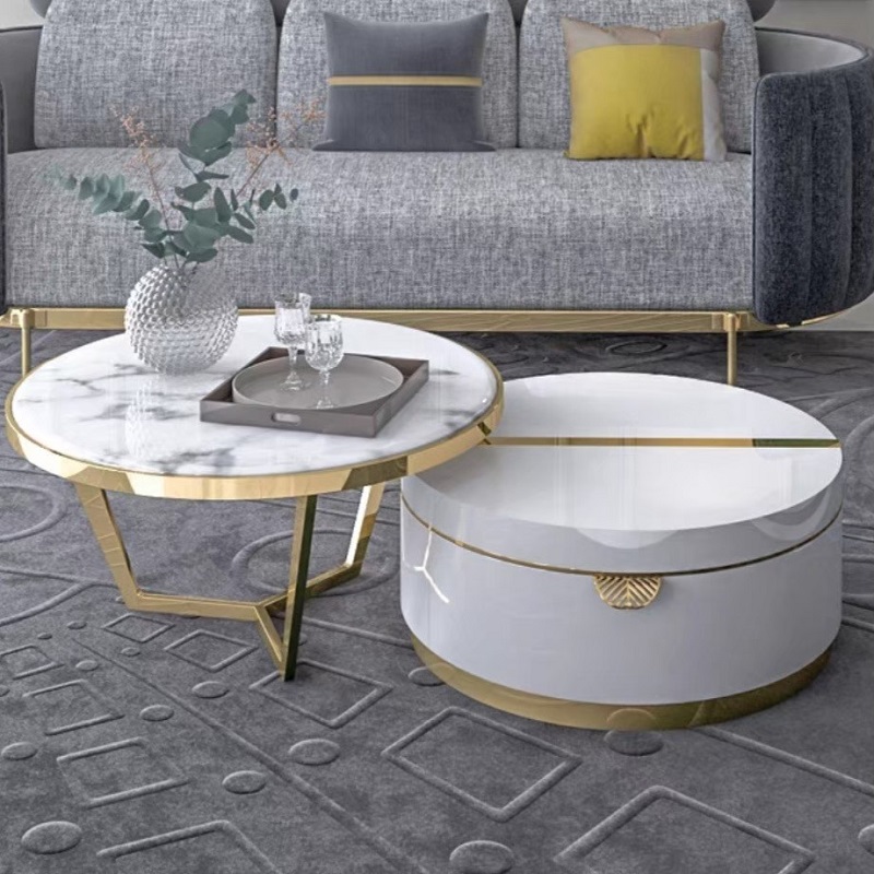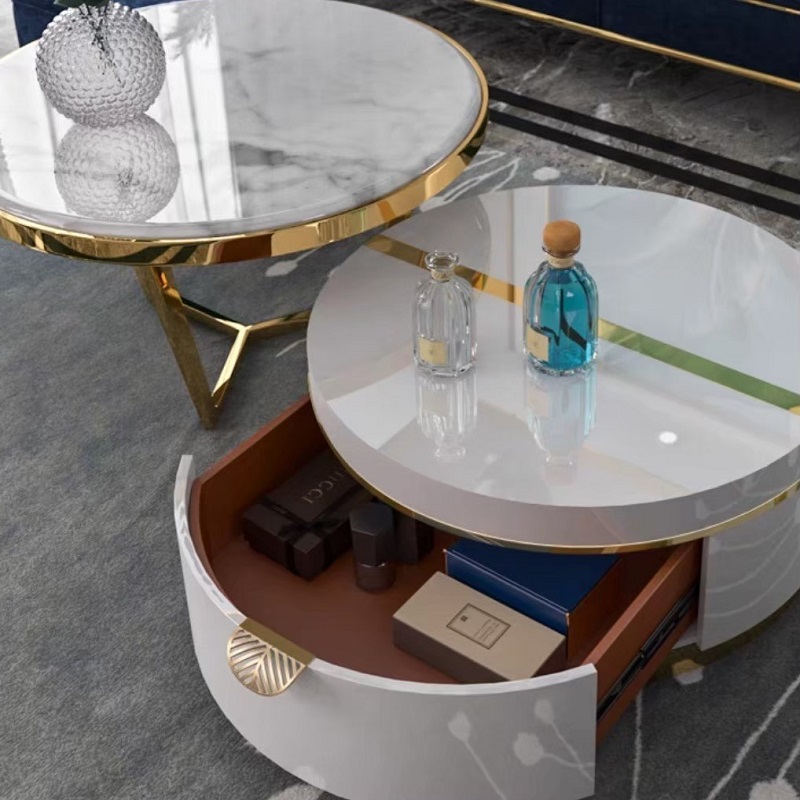 เซตโต๊ะกลาง ท็อปหิน โครงสีทองสแตนเลส #F05C00108