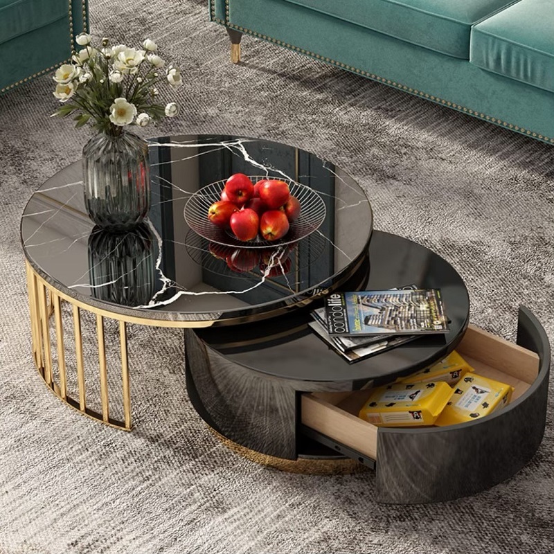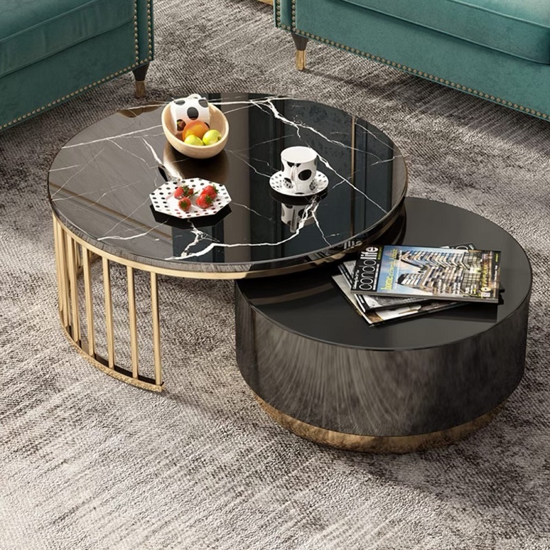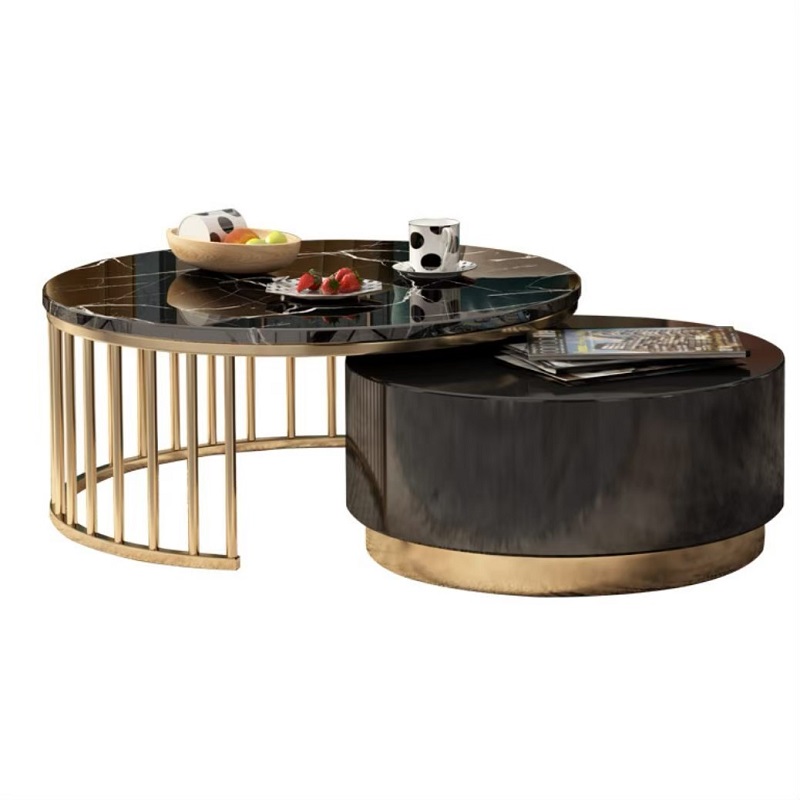 เซ็ตโต๊ะกลางท็อปหินอ่อน ไม้E1 ขาสแตนเลส #F05C0089