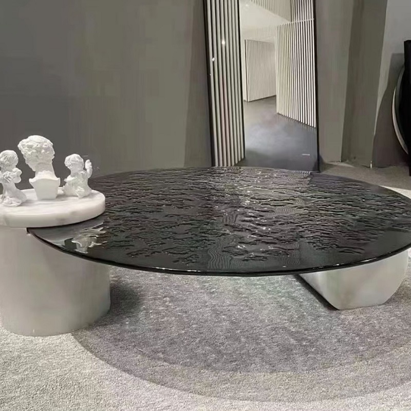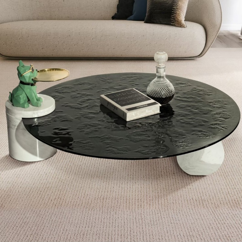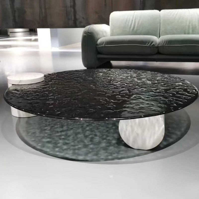 โต๊ะกลางท็อปกระจก ฐานหินชนวน #F05C00103