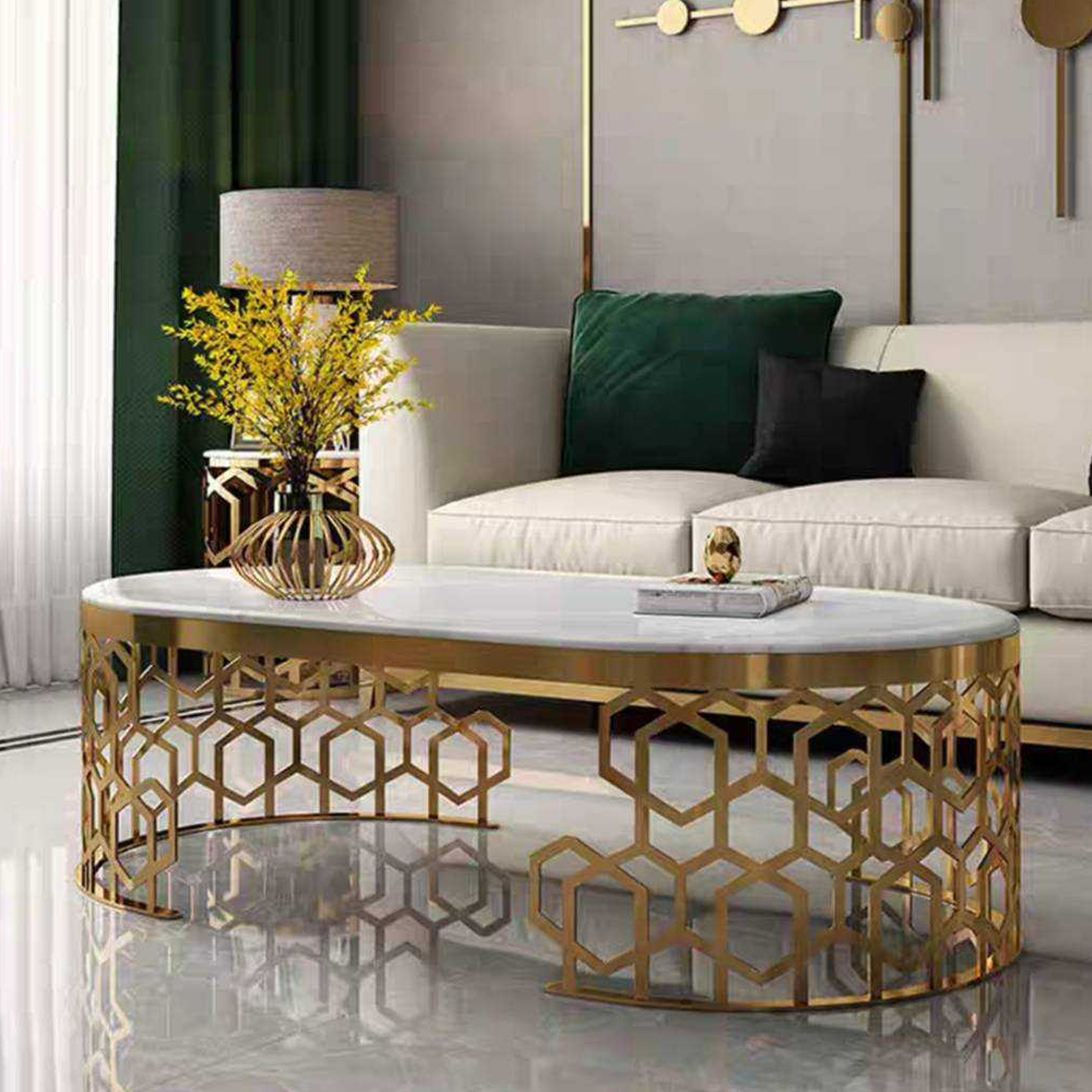 โต๊ะกลางท็อปหินอ่อน ขาแสตนเลส ขนาด 130 * 70 * 42 เซนติเมตร