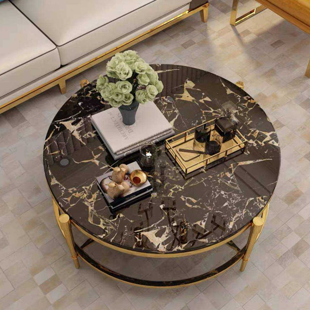 โต๊ะกลางท๊อปหินอ่อน ด้านล่างกระจกtemper ขอบแสตนเลส