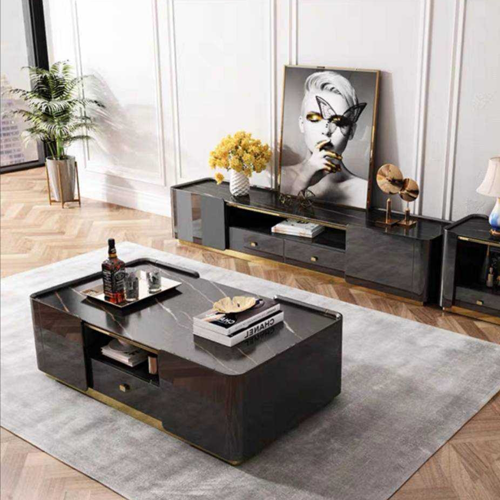 โต๊ะกลางไม้MDF E1 อะไหล่แสตนเลสสีทอง ขนาด 130 * 70 * 42 เซนติเมตร