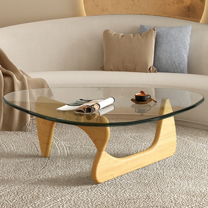 โต๊ะกลาง ท็อปกระจก Temper โครงไม้ Oak ขนาด 91*65*40 เซนติเมตร