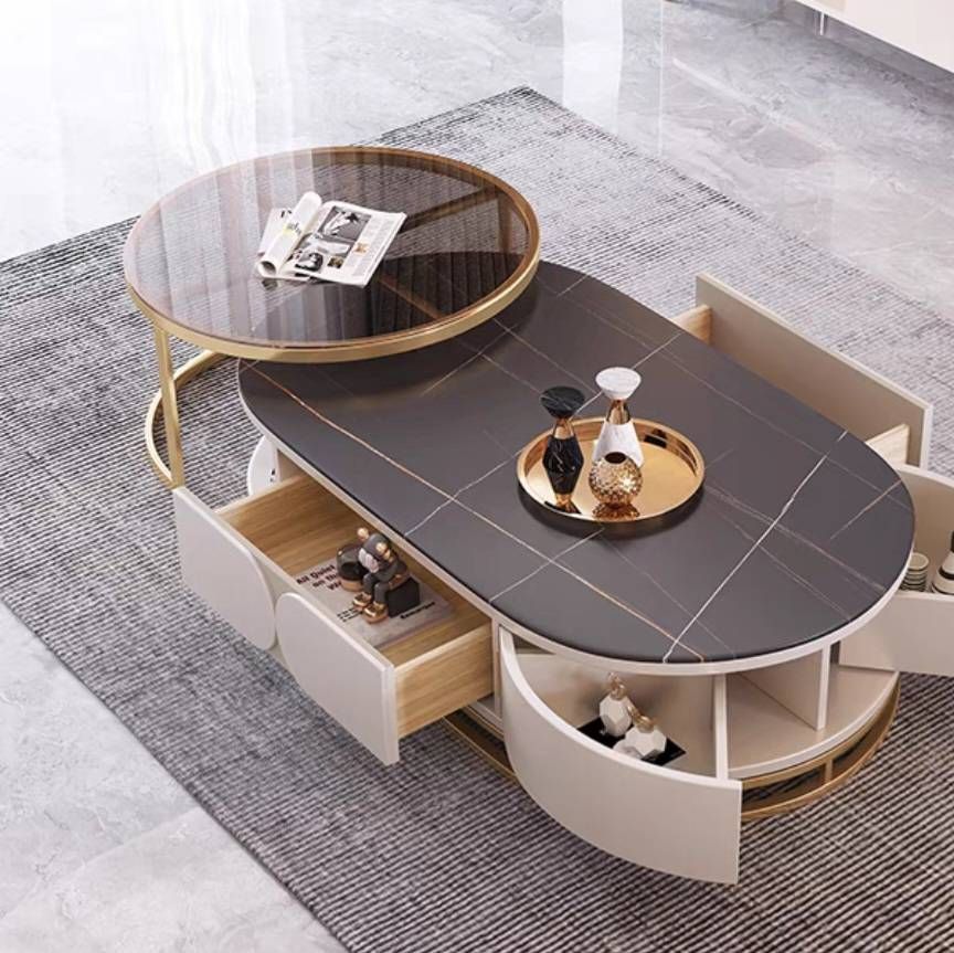 โต๊ะกลาง (Coffee Table) รุ่น M05A00135 – Mobilia Furniture ท็อปกระจกนิรภัย หินชนวน ดีไซน์สวยงาม ทันสมัย เหมาะสำหรับวางหน้า TV หน้าโซฟา สินค้าพรีออเดอร์ 30-45 วัน+-