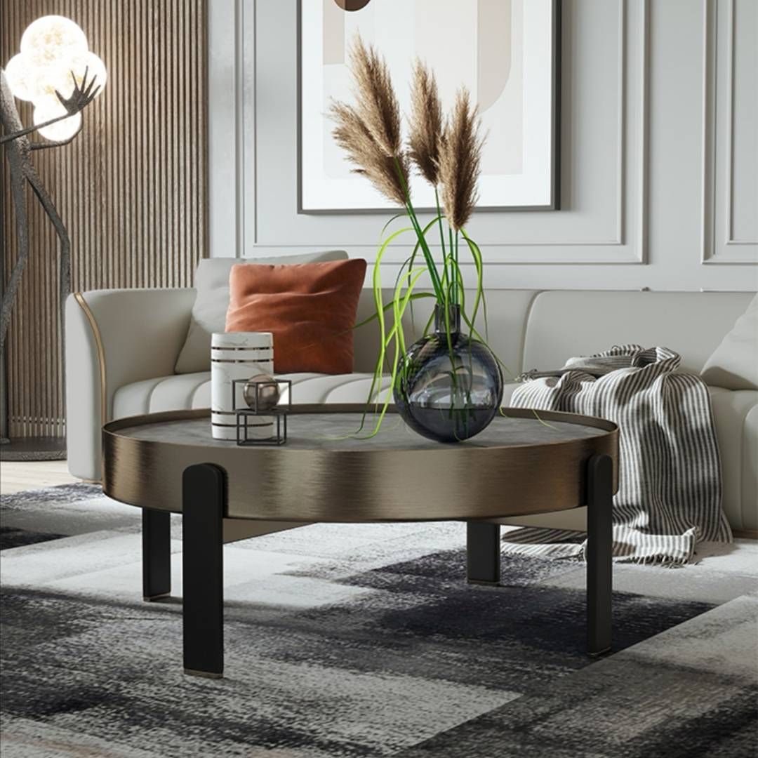 โต๊ะกลาง (Coffee Table) รุ่น M05A00066 – Mobilia Furniture ขนาด 90*90*36 เซนติเมตร ราคา 18900 บาท (Coffee Table size 90*90*36 CM. price 18900 bath) – ท็อป Rock Plate ขาเหล็ก Carbon ขอบแสตนเลส สินค้าพรีออเดอร์ 25-35 วัน+-
