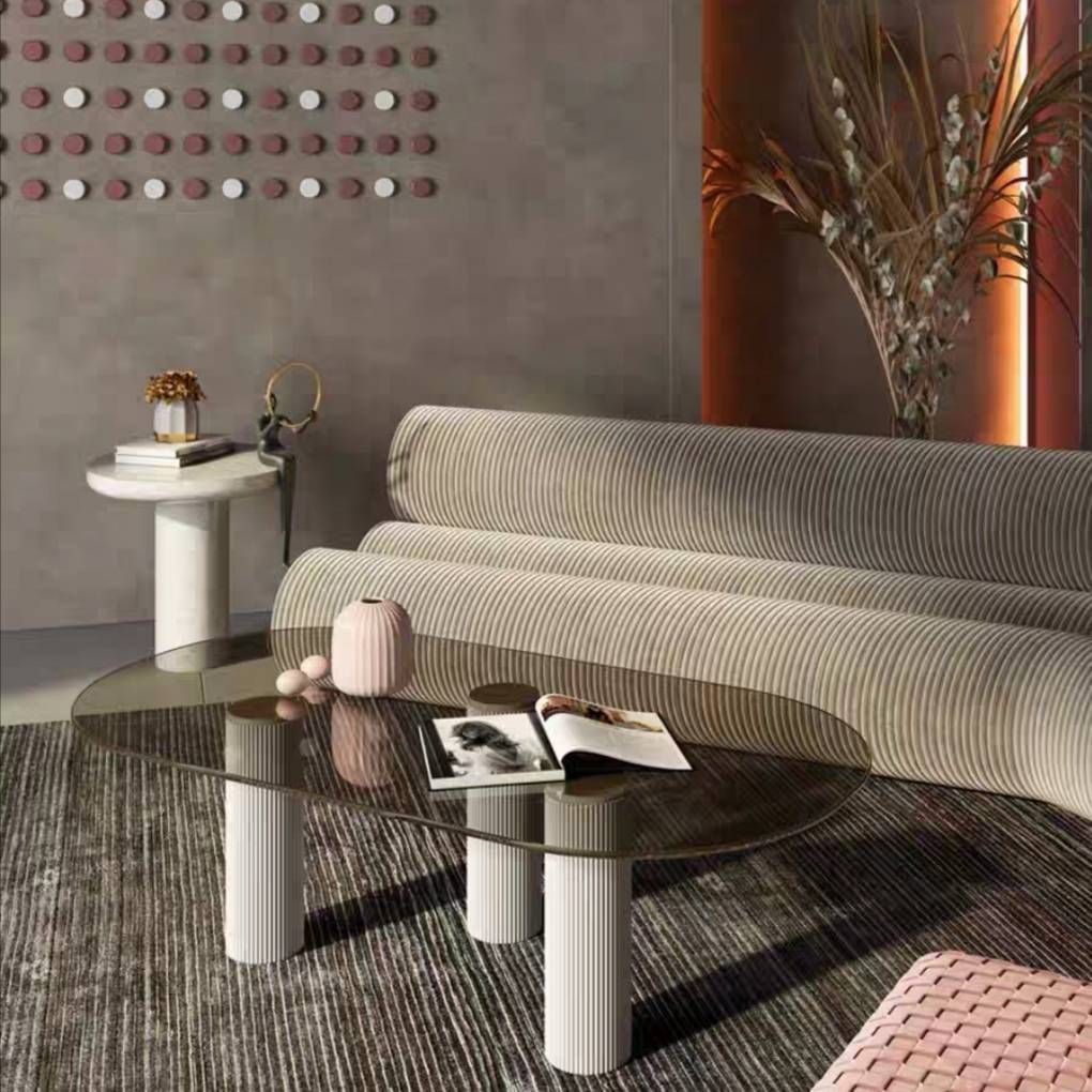โต๊ะกลาง (Coffee Table) รุ่น M05A00076 – Mobilia Furniture – ท็อปกระจกนิรภัย (Temper) โครงไม้ ขาโต๊ะสไตล์ Roman