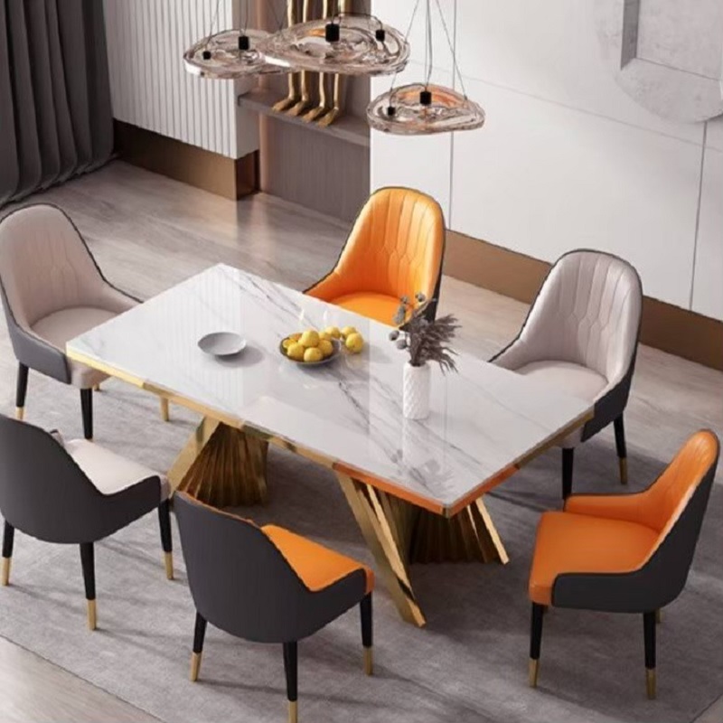 โต๊ะกินข้าวท็อปหินอ่อน ขาสแตนเลส #F10C0079