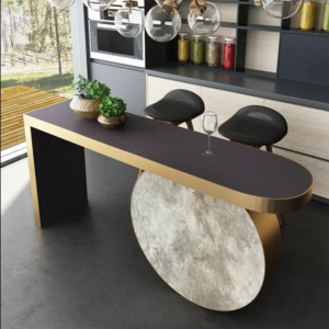 โต๊ะบาร์ ไม้ E0 ตกแต่งขอบแสตนเลสสีทอง
