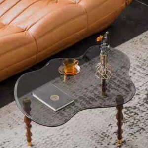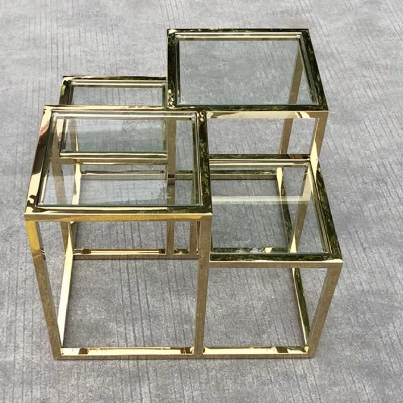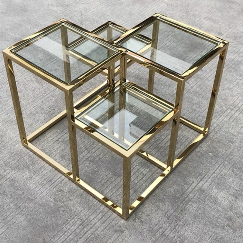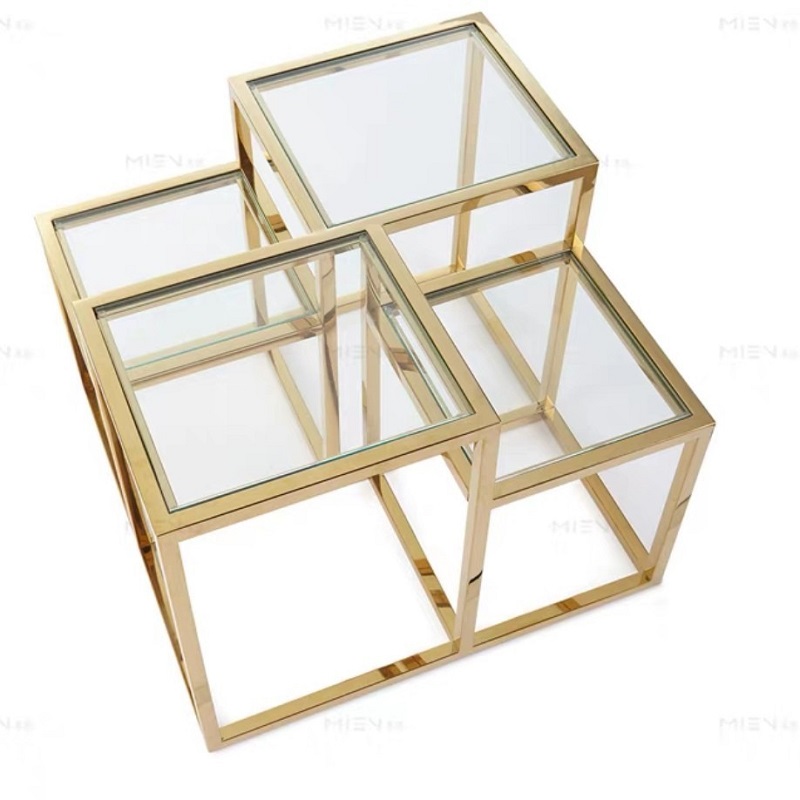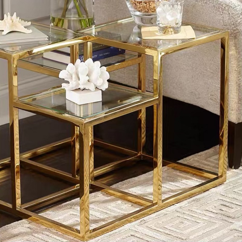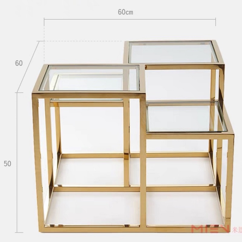 โต๊ะข้างโครงสแตนเลส ท็อปกระจกนิรภัย #F03C00143