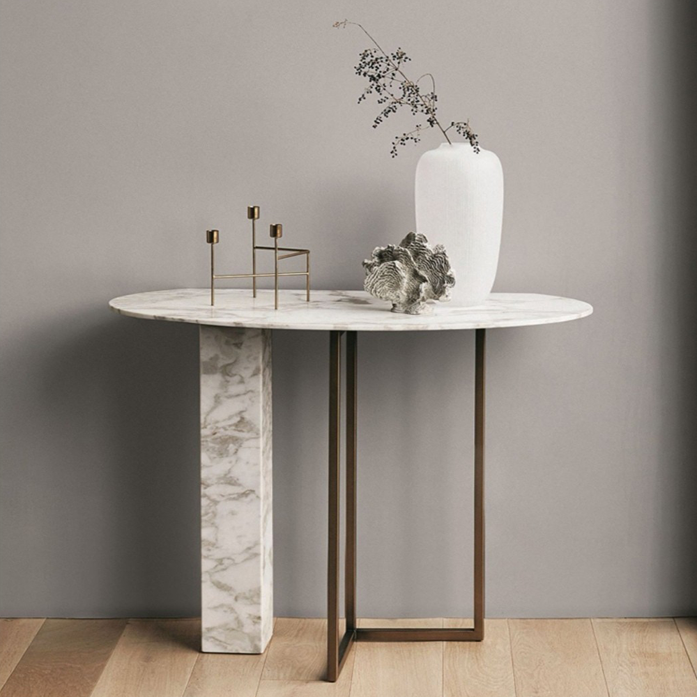 โต๊ะคอนโซลทำจากหินอ่อนธรรมชาติขาเหล็ก