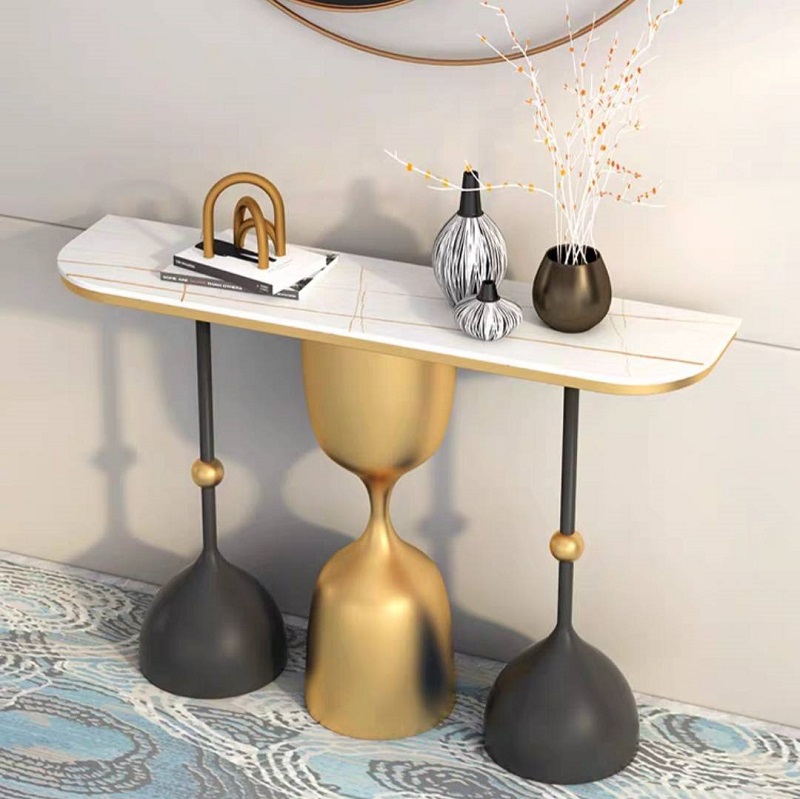 โต๊ะคอนโซล ท็อปหินชนวนแบบด้าน โครงเหล็กสีทอง (F02C0044)