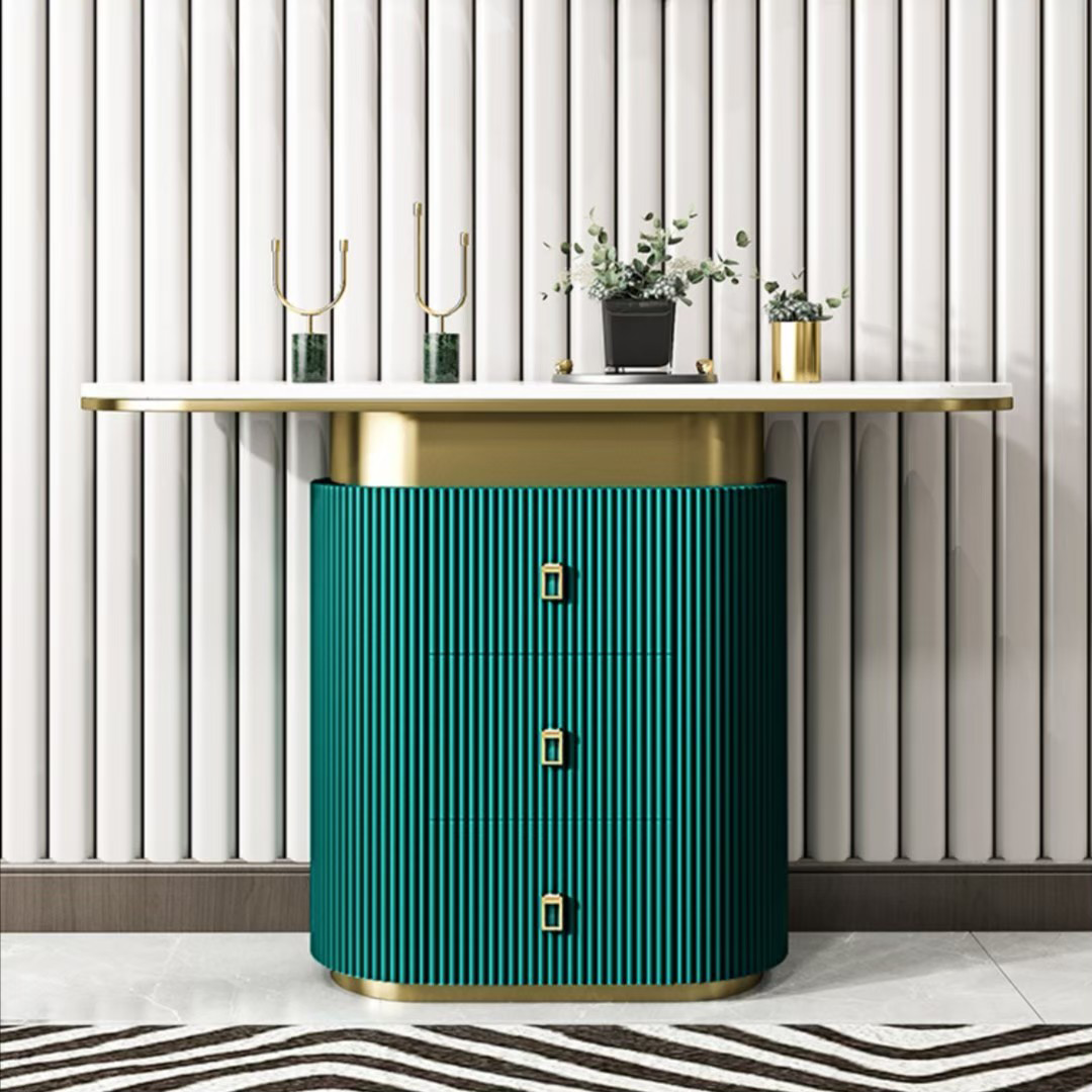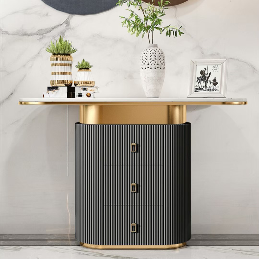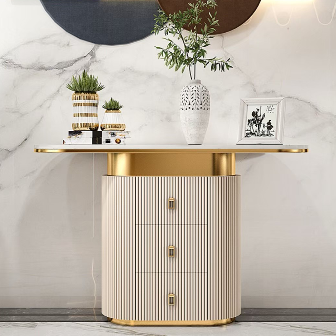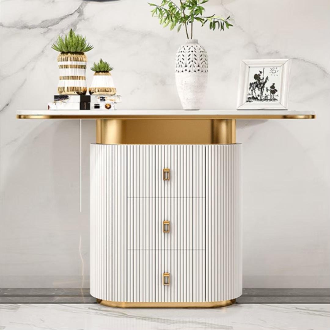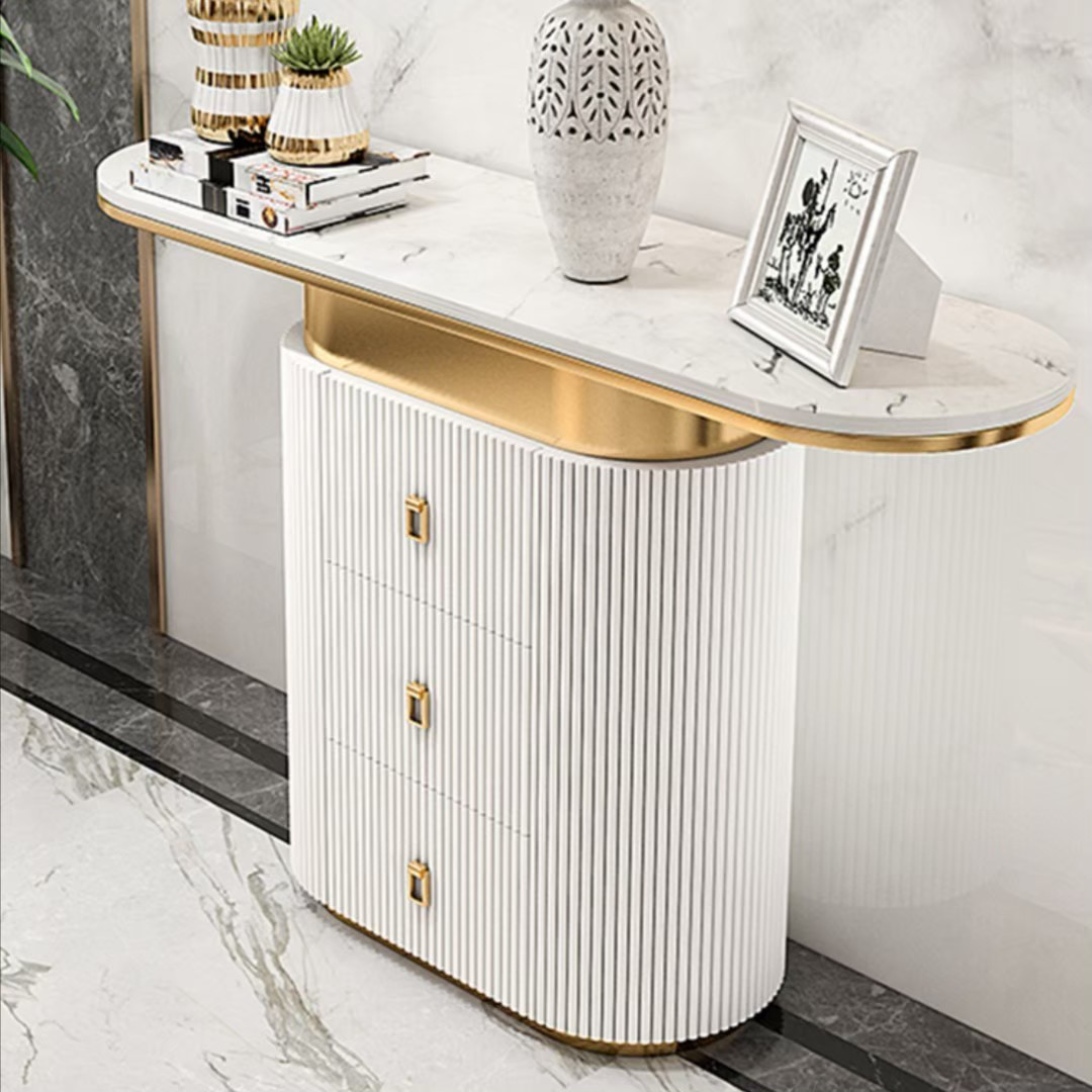 โต๊ะคอนโซล ทำจากไม้MDF ตกแต่งขอบแสตนเลสสีทอง ท็อปหินอ่อน มี 5 ขนาด