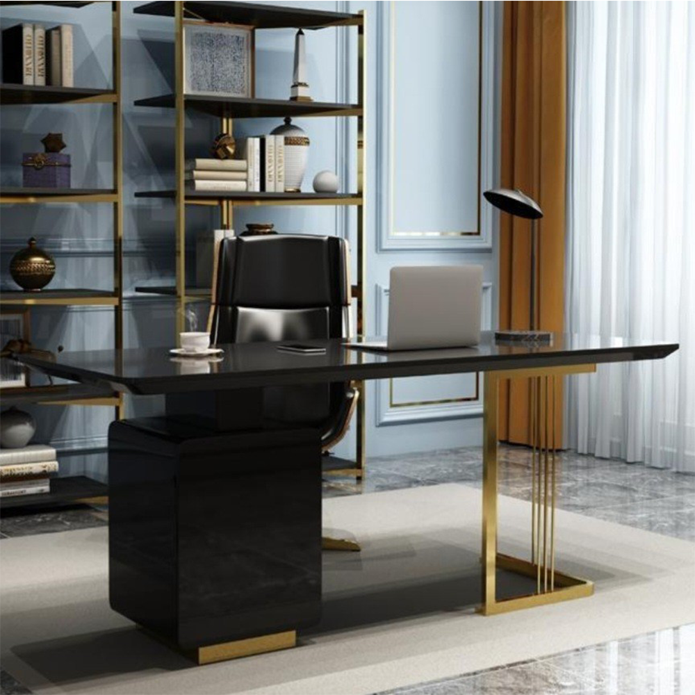 - โต๊ะทานข้าวไม้ MDF ขาทองแสตนเลส ขนาด 140*70*78 เซนติเมตร