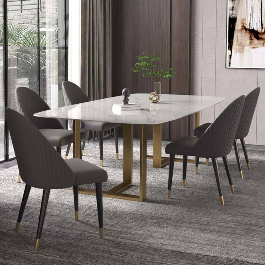 โต๊ะทานข้าว (Dining Table) รุ่น M10A0046 – Mobilia Furniture – ท็อปหินชนวน โครงแสตนเลส